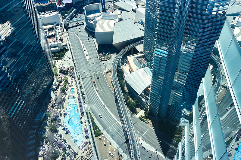 One of the few non-smoking hotels in Vegas. If you get an end suite you will get wrap around views of the north and south